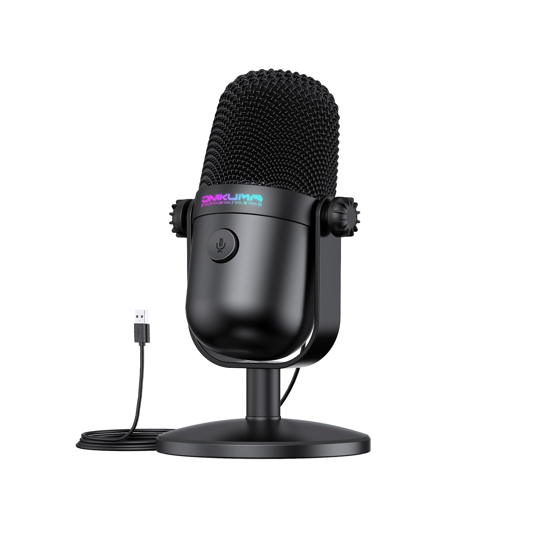 Gaming Microphone with Noise Cancellation & Mute Button, USB Condenser Mic for Streaming/Recording, Ultra-Compact Design, Compatible with PC/Mac/PS4/PS5, Podcast/YouTube/Twitch/Discord (Black)